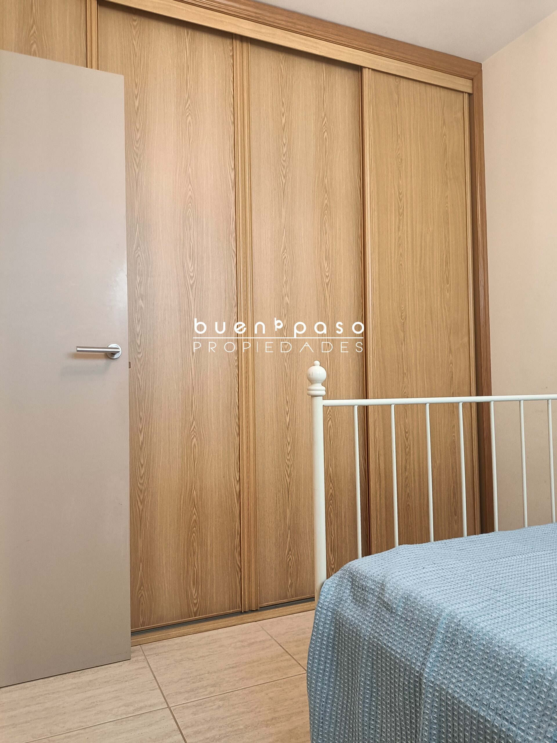 Con 90 m² de espacio bien distribuido, este piso cuenta con dos acogedores dormitorios, ambos con camas dobles y amplios armarios empotrados, perfectos para el descanso y la organización.